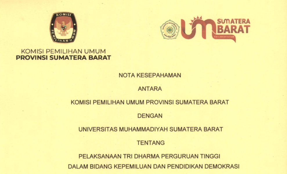 NOTA KESEPAHAMAN ANTARA KOMISI PEMILIHAN UMUM PROVINSI SUMATERA BARAT DENGAN UNIVERSITAS MUHAMMADIYAH SUMATERA BARAT Selasa, 23 Desember 2025 14:17 71 Disini Bagikan: Dilihat 71 Kali.