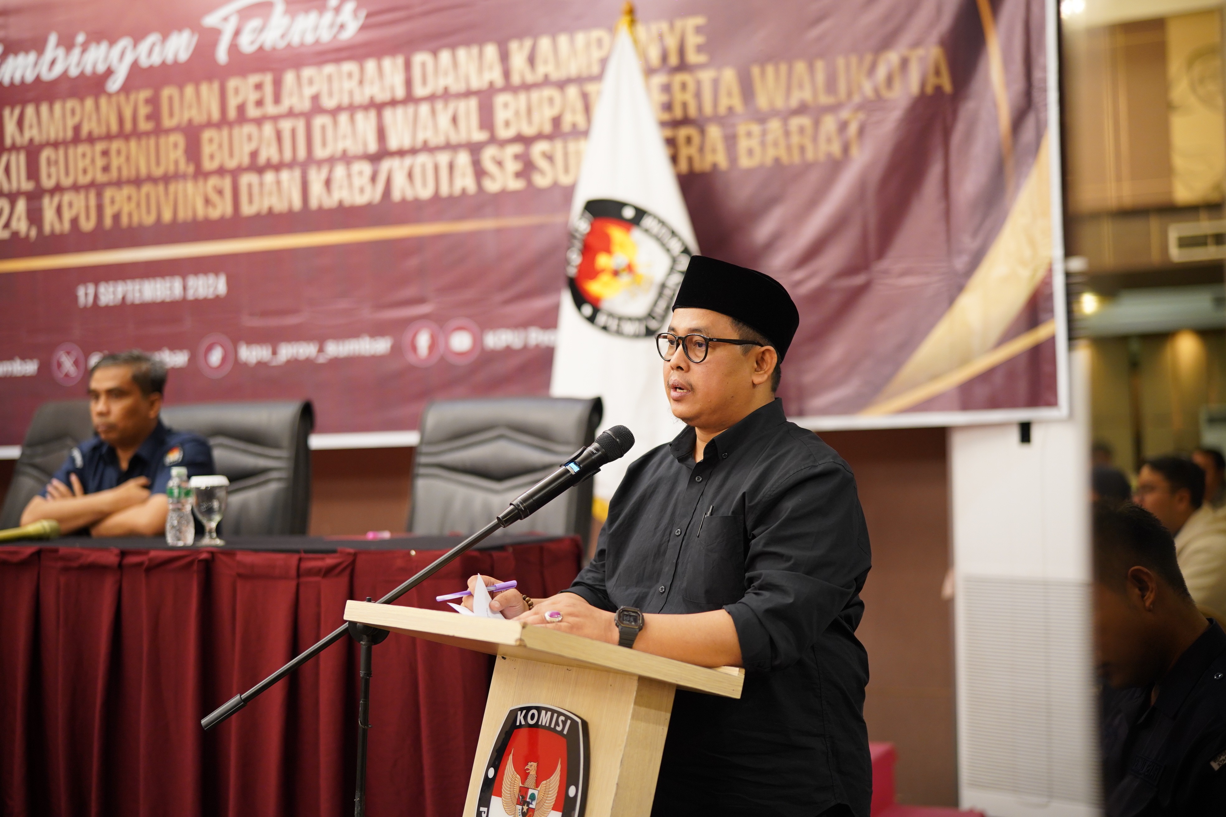 Padang.sumbar.kpu.go.id - KPU Provinsi Sumatera Barat menyelenggarakan Bimbingan Teknis (Bimtek) terkait Pelaksanaan Regulasi Kampanye dan Pelaporan Dana Kampanye dalam rangka Pemilihan Serentak Nasional Tahun 2024. Acara ini dihadiri oleh 110 peserta, terdiri dari 76 perwakilan KPU kabupaten/kota, 2 perwakilan dari Badan Kesbangpol Provinsi Sumatera Barat dan Dirintelkam Polda Sumbar, serta 30 peserta dari KPU Provinsi Sumatera Barat.