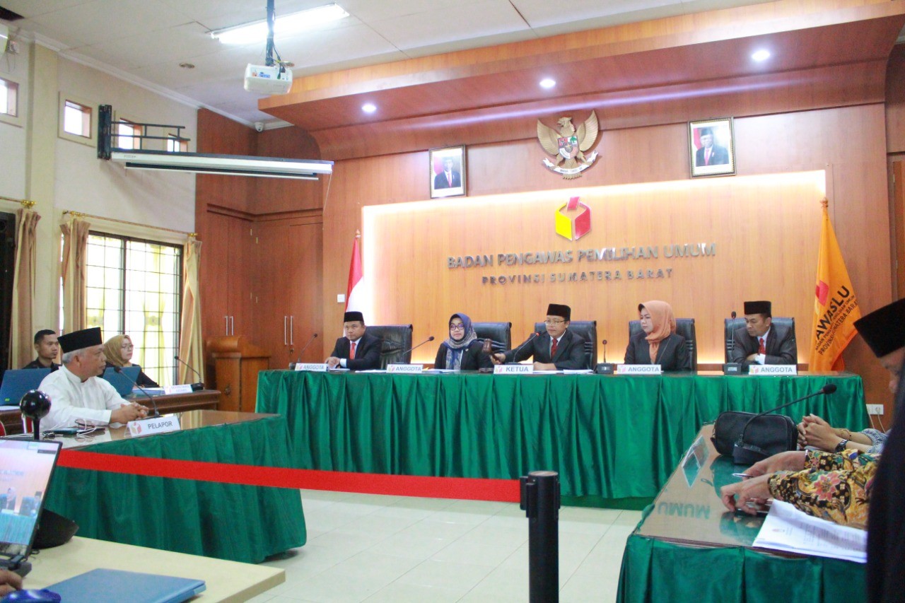 Padang, sumbar.kpu.go.id – Putusan ini dibacakan Majelis Pemeriksa, Badan Pengawas Pemilu Provinsi Sumatera Barat (Bawaslu Sumbar), dihadapan para pihak, dalam Sidang Dugaan Pelanggaran Administrasi Pemilu pada Jum’at (20/1) di Kantor Bawaslu Sumbar, Jalan Pramuka, Padang.