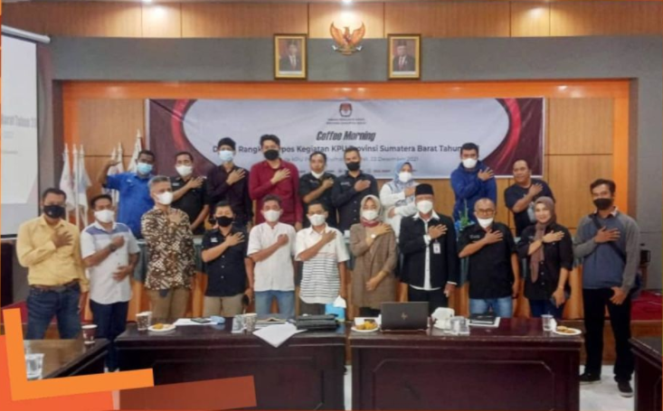 sumbar.kpu.go.id - Menutup akhir tahun, Komisi Pemilihan Umum (KPU) Provinsi Sumatera Barat mengajak awak media pada kegiatan Coffe Morning di aula kantor KPU Sumbar, Kamis (23/12/2021) dalam rangka ekspos kegiatan KPU Sumbar di tahun 2021.