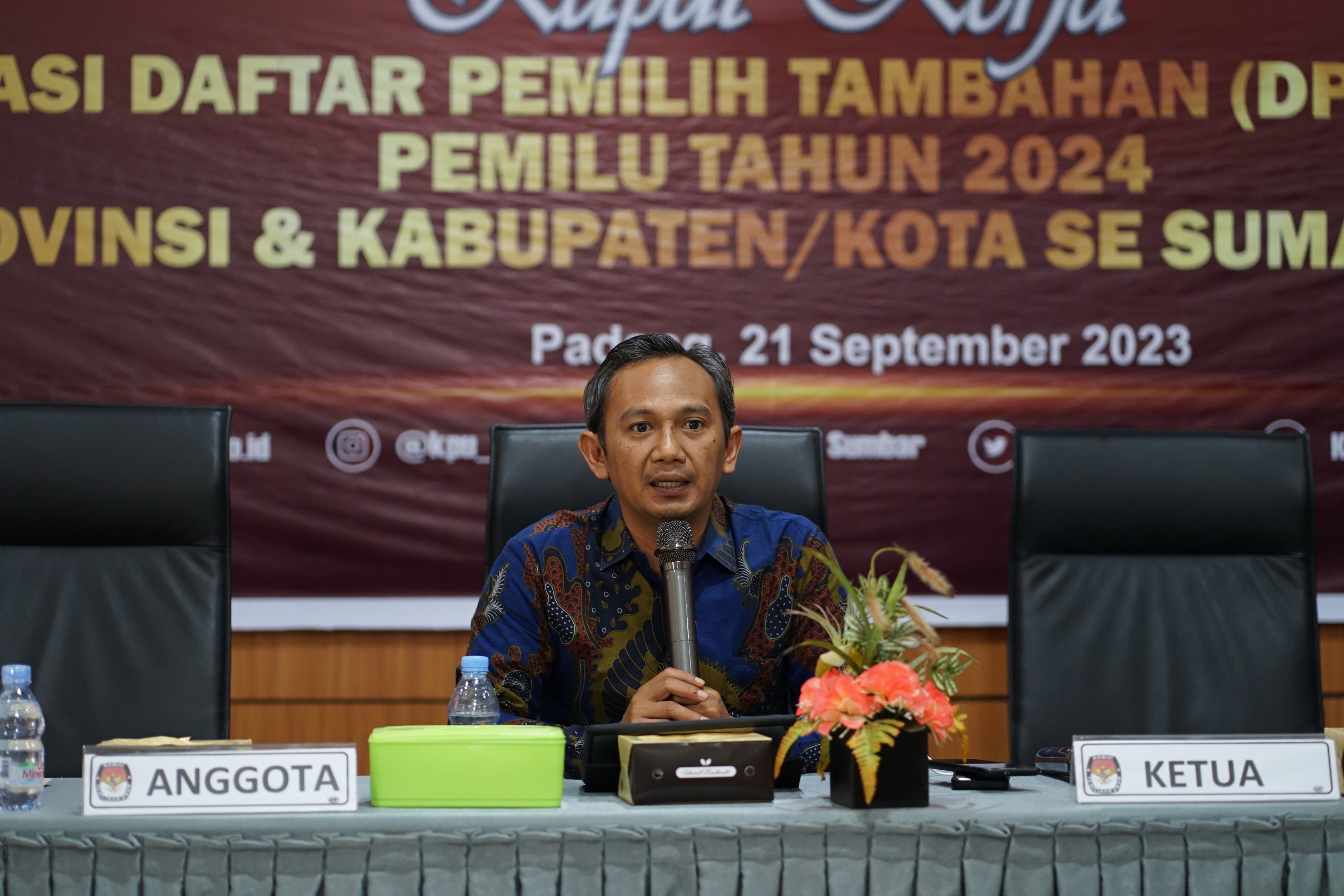 "Pergerakan data yang meninggal dunia sudah sangat banyak, ini indikator yang mempengaruhi data pemilih. Data TMS didukung dari data pindah domisili yang di butuhkan. Potensi Konflik, kurangnya sosialisasi dalam permasalahan DPTb, Terutama DPTb yang KTP sudah pindah pada daerah Tujuannya. Maka dari itu pemahaman kita dari badan adhoc kita harus lebih ditingkatkan lagi. Terkait persolalan SDM, rekruitmen KPPS diutamakan yaitu pemilih daerah sekitar KPPS, dan menyatakan KPPS itu sudah terdaftar sebagai pemilih. Pelaksanaan Pilkada dilaksanakan di September 2024, yaitu 10 (sepuluh) bulan sebelum pemilihan. Dalam pembahasan RAB, yang perlu di ingat yaitu tentang Badan adhoc, tempat memilih dan data pemilih". Kata Jons Manedi, Ketua Divisi Sosdiklih, Parmas dan SDM KPU Provinsi Sumatera Barat dalam arahannya.