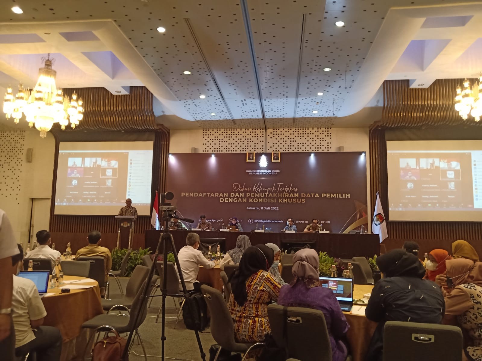 “Pemilih dengan kondisi dan lokasi khusus ini harus kita selamatkan hak pilihnya. Kebijakan untuk itu harus dirumuskan dengan matang, baik secara regulasi maupun teknis penyelenggaraan, dimulai dari pendataan dan pemutakhiran data pemilih ini”, tegas Hasyim Asy’ari, Ketua KPU RI saat membuka Diskusi Kelompok Terbatas Pendaftaran dan Pemutakhiran Data Pemilih dengan Kondisi Khusus, Senin (11/7/2022) di Hotel Meridien Jakarta. Hasyim juga menekankan kondisi khusus tersebut juga termasuk pencatatan terhadap pasien gangguan kejiwaan di bawah pengawasan otoritas dokter jiwa.