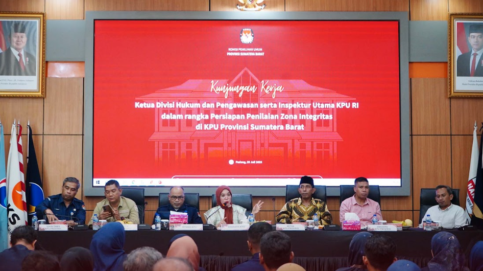 Padang-sumbar.kpu.go.id - Komisi Pemilihan Umum Republik Indonesia melakukan kunjungan kerja ke KPU Provinsi Sumatera Barat pada Selasa, 29 Juli 2025, dalam rangka meninjau secara langsung kesiapan pelaksanaan pembangunan Zona Integritas menuju Wilayah Bebas dari Korupsi (WBK) dan Wilayah Birokrasi Bersih dan Melayani (WBBM).