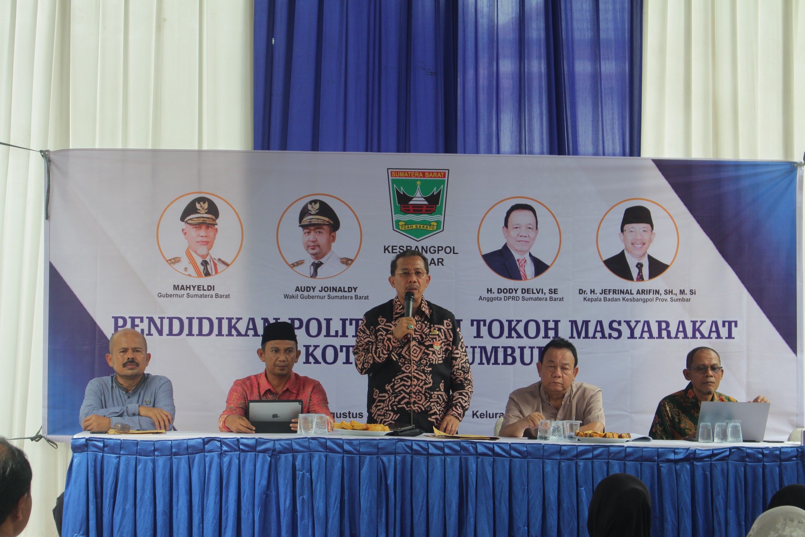 Padang-sumbar.kpu.go.id - Dalam rangka meningkatkan pemahaman proses demokrasi di daerah, KPU Provinsi Sumatera Barat menjadi narasumber pada acara Sosialisasi dan Pendidikan Pemilih Pemilu Serentak Tahun 2024 kepada masyarakat Kota Payakumbuh yang diselenggarakan oleh Kesbangpol Provinsi Sumatera Barat pada Jumat 18 Agustus 2023 bertempat di Karina Guest House Payakumbuh.