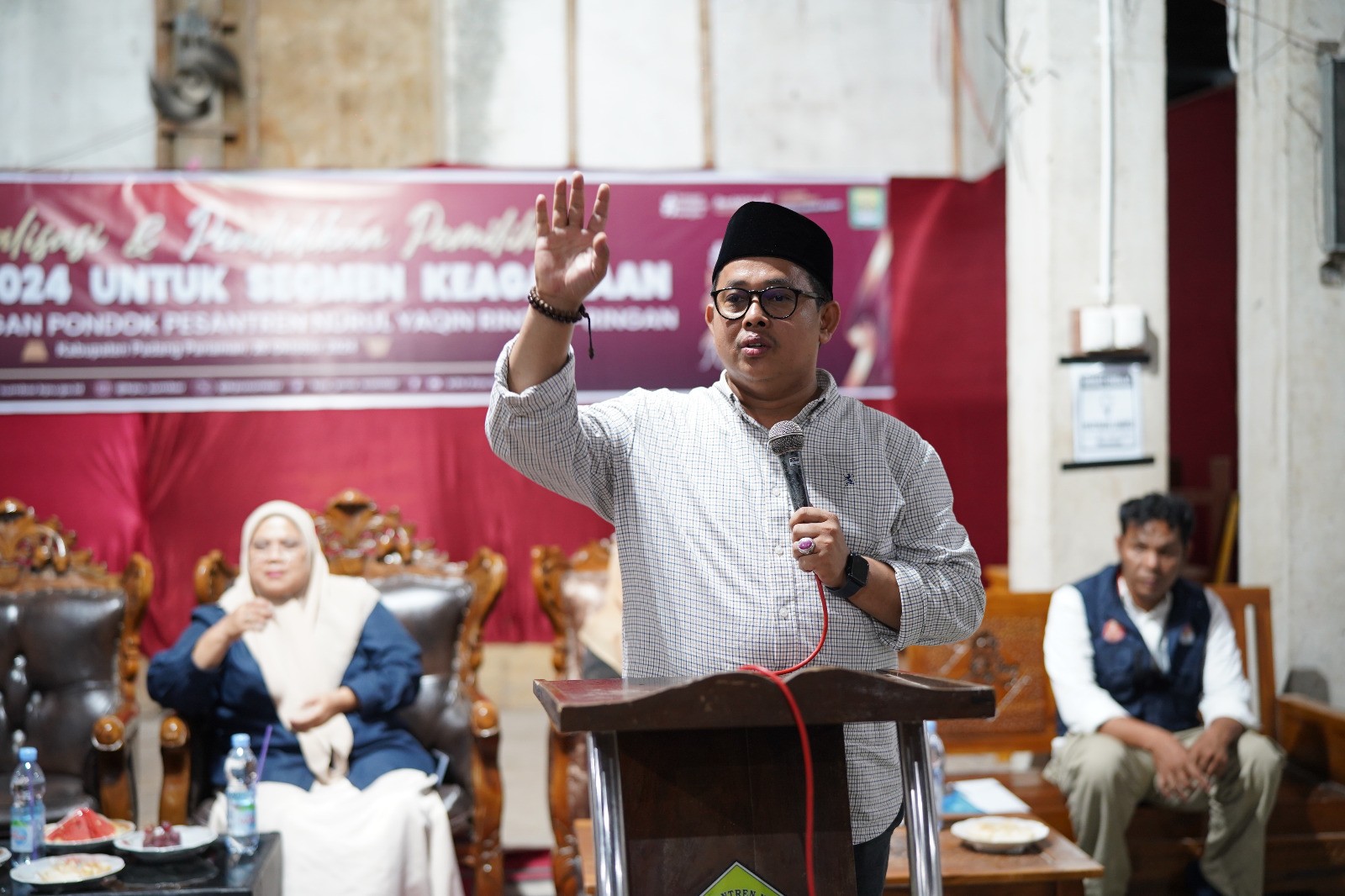 Padang-sumbar.kpu.go.id - KPU Provinsi Sumatera Barat melalui Ketua Divisi Teknis Penyelenggaraan Pemilu, Ory Sativa Syakban, menggelar sosialisasi dan pendidikan pemilih untuk Pilkada Serentak 2024. Acara ini berlangsung di Pondok Pesantren Nurul Yaqin Ringan-Ringan, Kabupaten Padang Pariaman, dengan dihadiri ratusan santri.