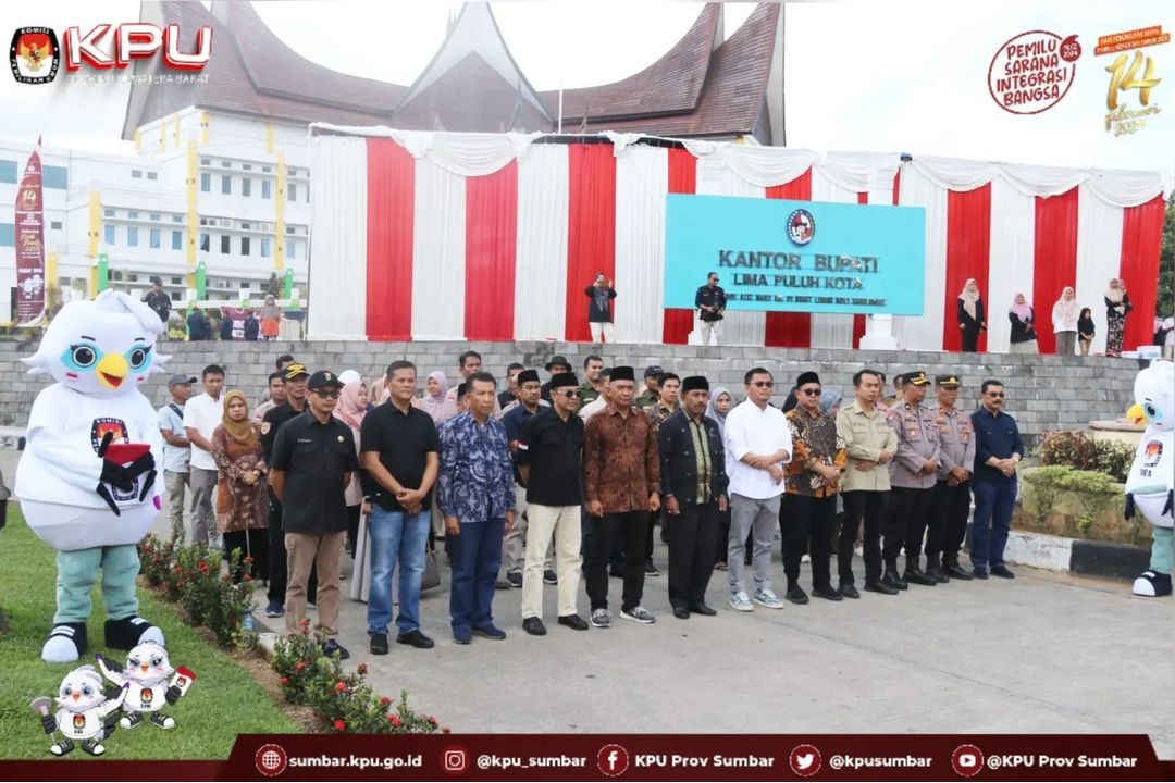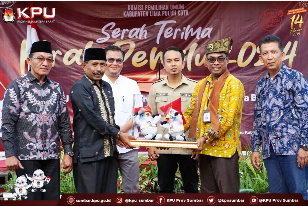 Tangjung Pati - sumbar.kpu.go.id - Satu tahun menuju Hari Pemungutan Suara Pemilu Tahun 2024 Komisi Pemilihan Umum (KPU) melaksanakan Kirab Pemilu Tahun 2024 akan melalui 306 Kabupaten/Kota di seluruh wilayah Indonesia. Hal tersebut disampaikan Ketua KPU Sumbar Surya Efitrimen dalam acara serah terima bendera kirab pemilu Tahun 2024 dari Ketua KPU Kabupaten Kampar Riau, Ilham M.Yasir di halaman kantor Bupati Lima Puluh Kota pada Minggu, 11 Juni 2023.
