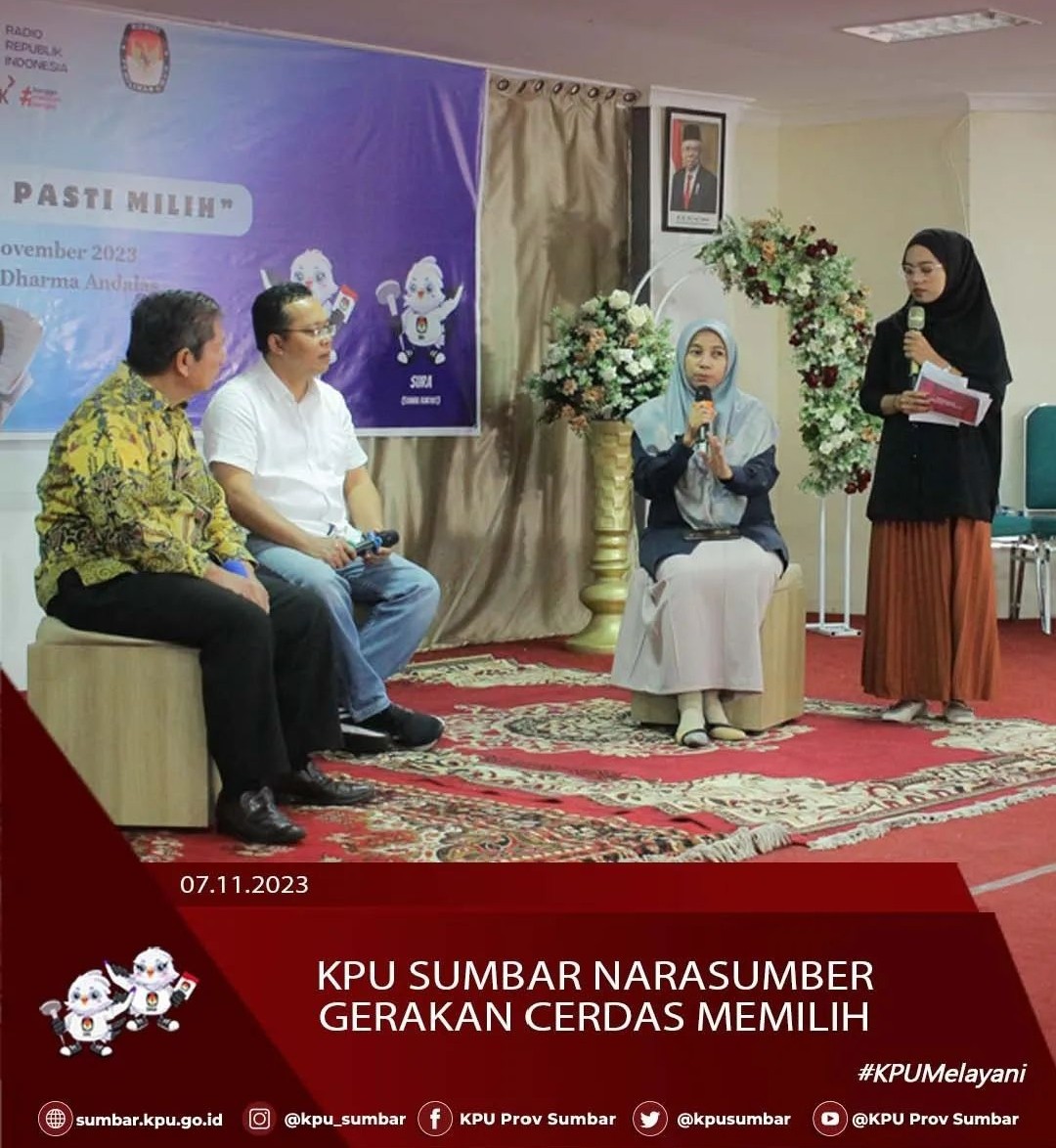 "Sebagai upaya edukasi bagi pemilih muda dan Masyarakat, acara ini juga menghadirkan dialog interaktif bersama narasumber Ade Alifya, Analis Pemilu Sekretariat KPU Provinsi Sumatera Barat, Alni Ketua Bawaslu Provinsi Sumatera Barat.
