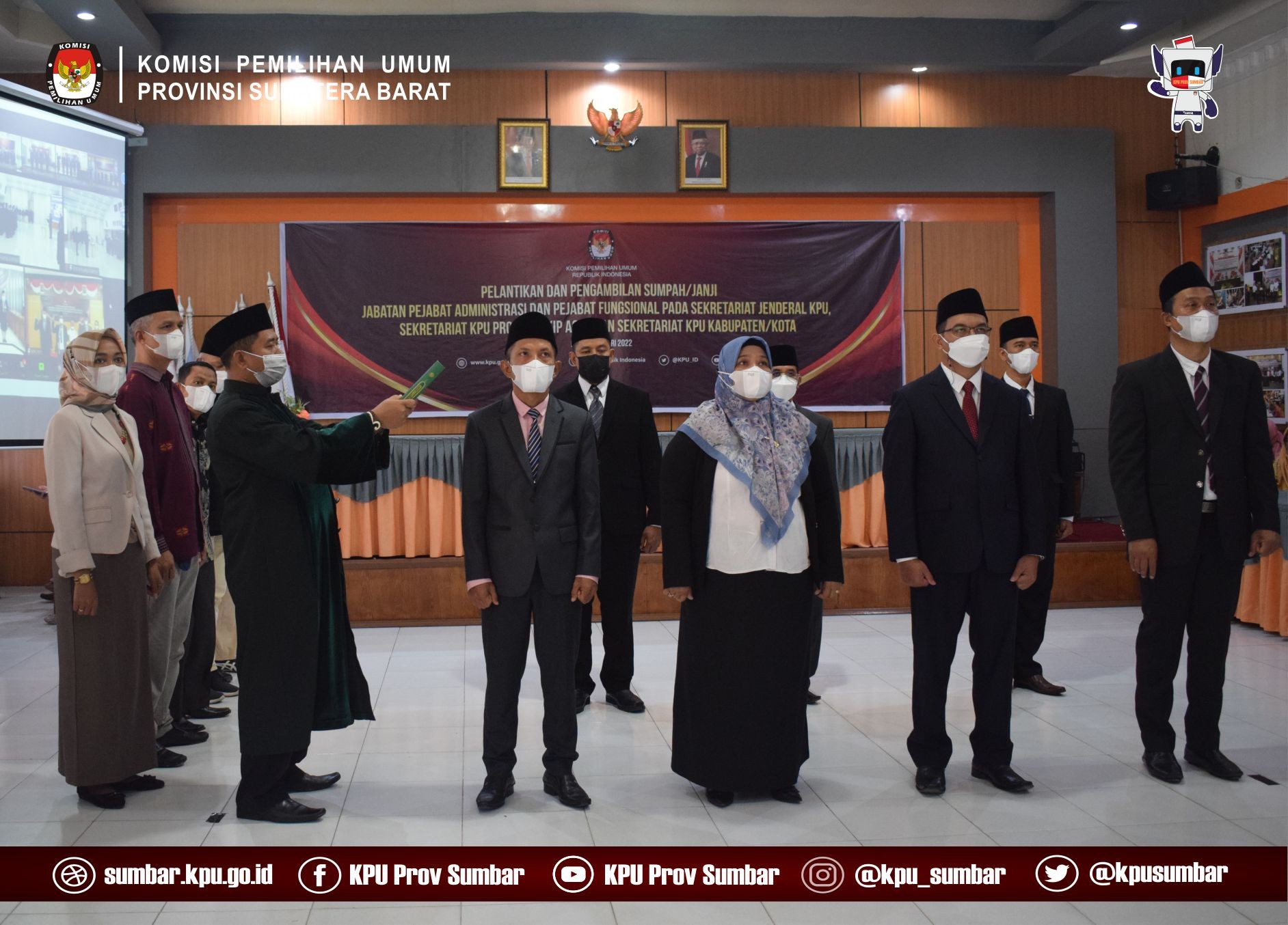 Sementara di Sumbar, pelantikan pejabat administrator dilakukan terhadap tiga orang sekretaris KPU kabupaten yakni Agam, Pasaman Barat, Kepulauan Mentawai serta empat kepala bagian (Kabag.) di KPU Sumbar yaitu Kabag. Hukum dan Sumber Daya Manusia, Kabag. Teknis Penyelenggaraan Pemilu, Partisipasi dan Hubungan Masyarakat, Kabag. Keuangan, Umum dan Logistik, Kabag. Perencanaan, Data dan Informasi.