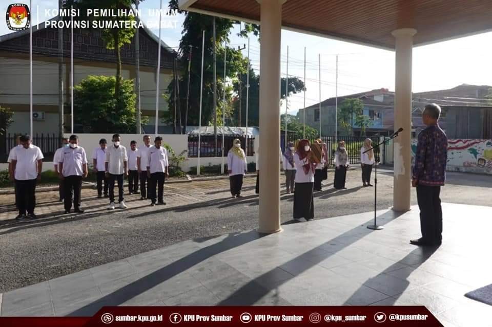 Apel Senin (4/7/2022) yang berlangsung khidmat di halaman kantor KPU Sumbar ini diikuti oleh 35 personil sekretariat. Turut hadir Sekretaris, Firman, dan para Kabag di lingkungan Sekretariat KPU Sumbar.