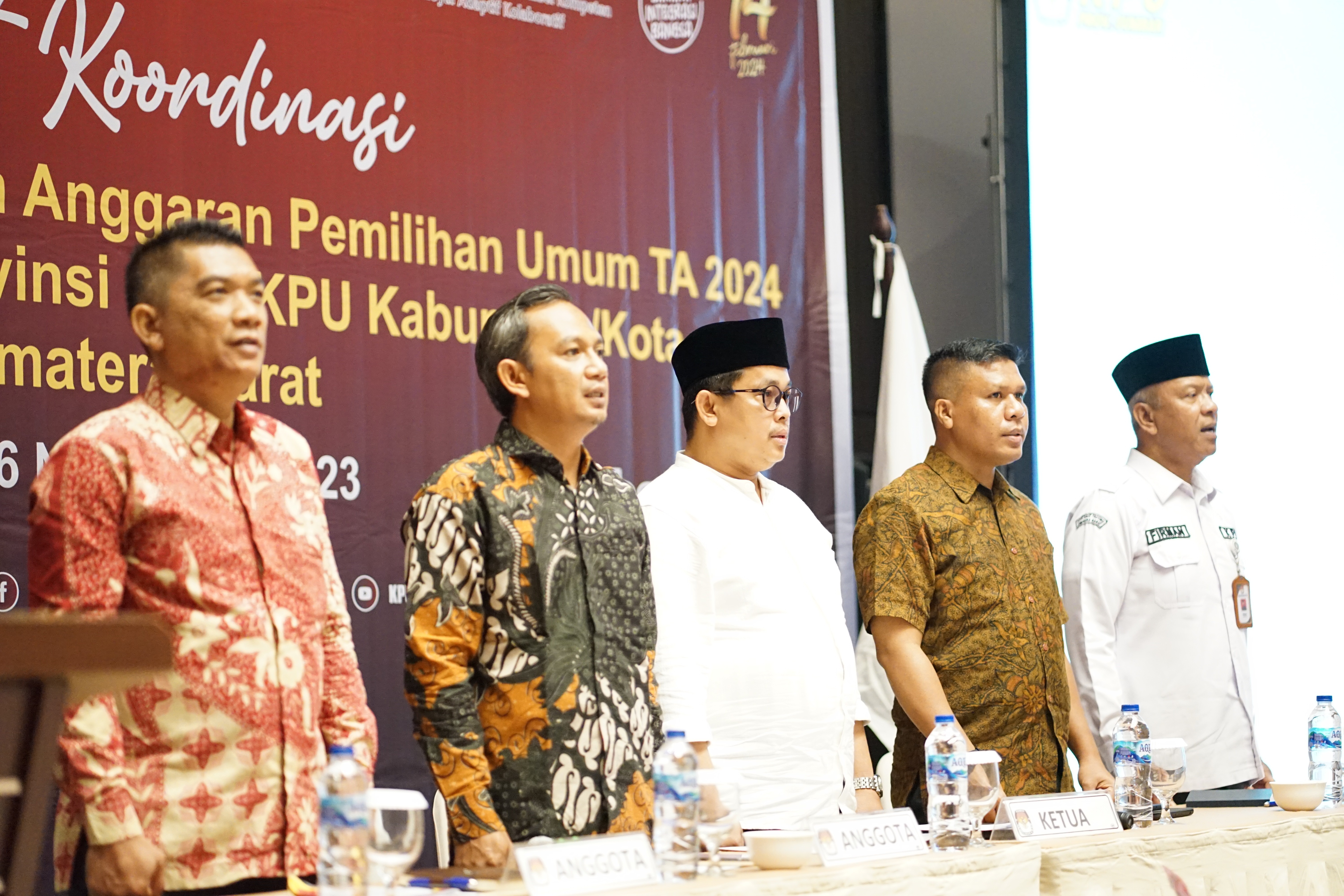 Hal itu disampaikan Ory Sativa Syakban, Ketua Divisi Teknis Penyelenggaraan Pemilu yang mewakili Ketua KPU Provinsi Sumatera Barat dalam Rapat Koordinasi Penyusunan dan Perencanaan Angggaran Pemilihan Umum Tahun Anggaran 2024 bersama KPU Kabupaten/ Kota se-Sumatera Barat, Senin, 6 November 2023 bertempat di Hotel Santika Premiere, Padang".