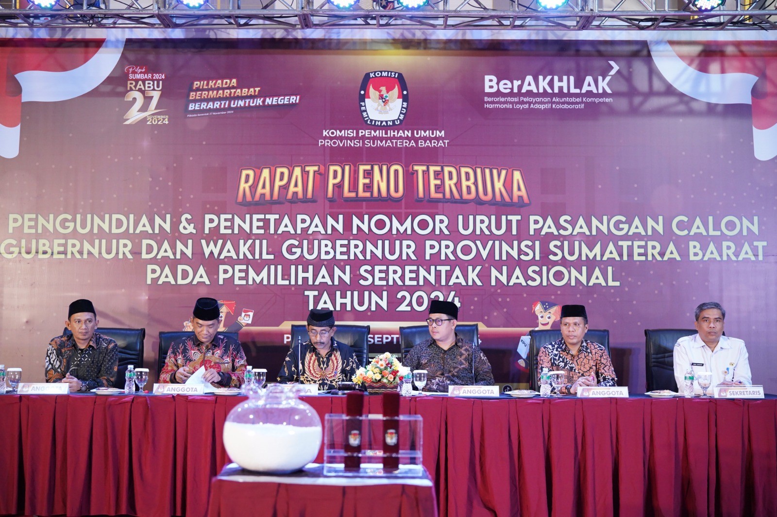 Rapat Pleno Terbuka Pengundian Nomor Urut Paslon Gubernur dan Wakil Gubernur Sumatera Barat 2024