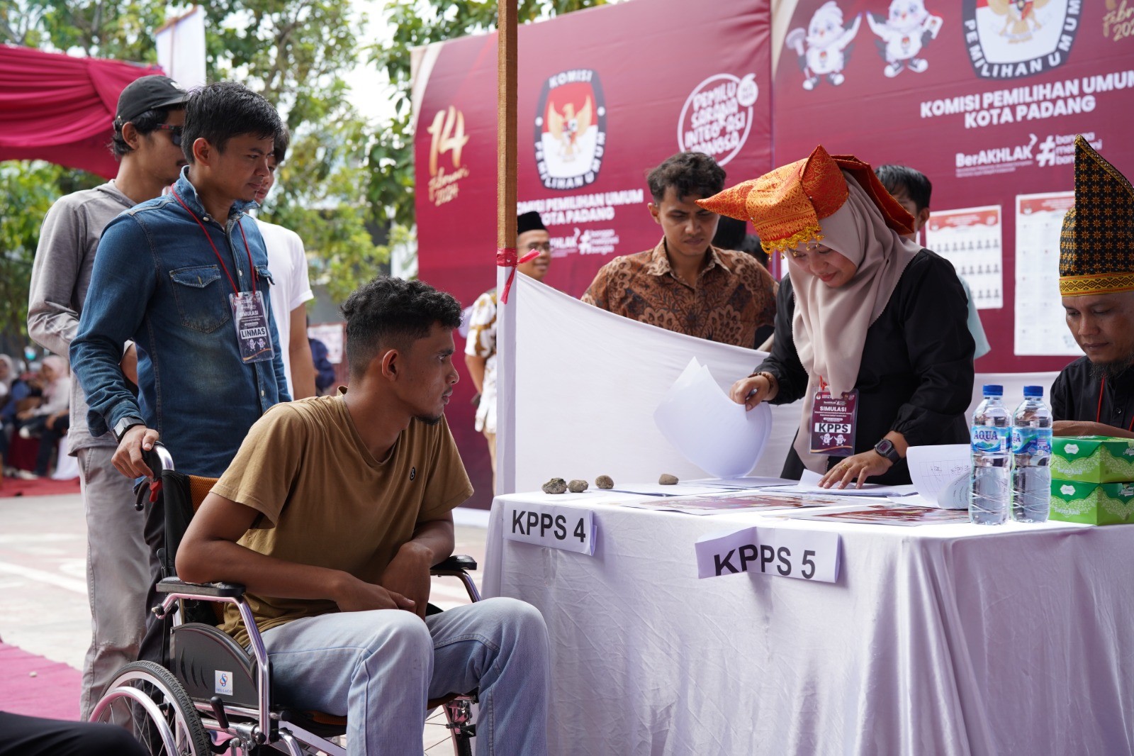 "Pemilih disabilitas harus dilayani terlebih dahulu di TPS. Pemilih disabilitas dapat didampingi oleh pendamping, baik pendamping keluarga maupun pendamping dari petugas KPPS di TPS tempat memilih. Pemilih disabilitas dapat menggunakan alat bantu pemungutan suara, seperti template surat suara dan alat bantu penglihatan" arahan Ketua KPU Kota Padang ini.