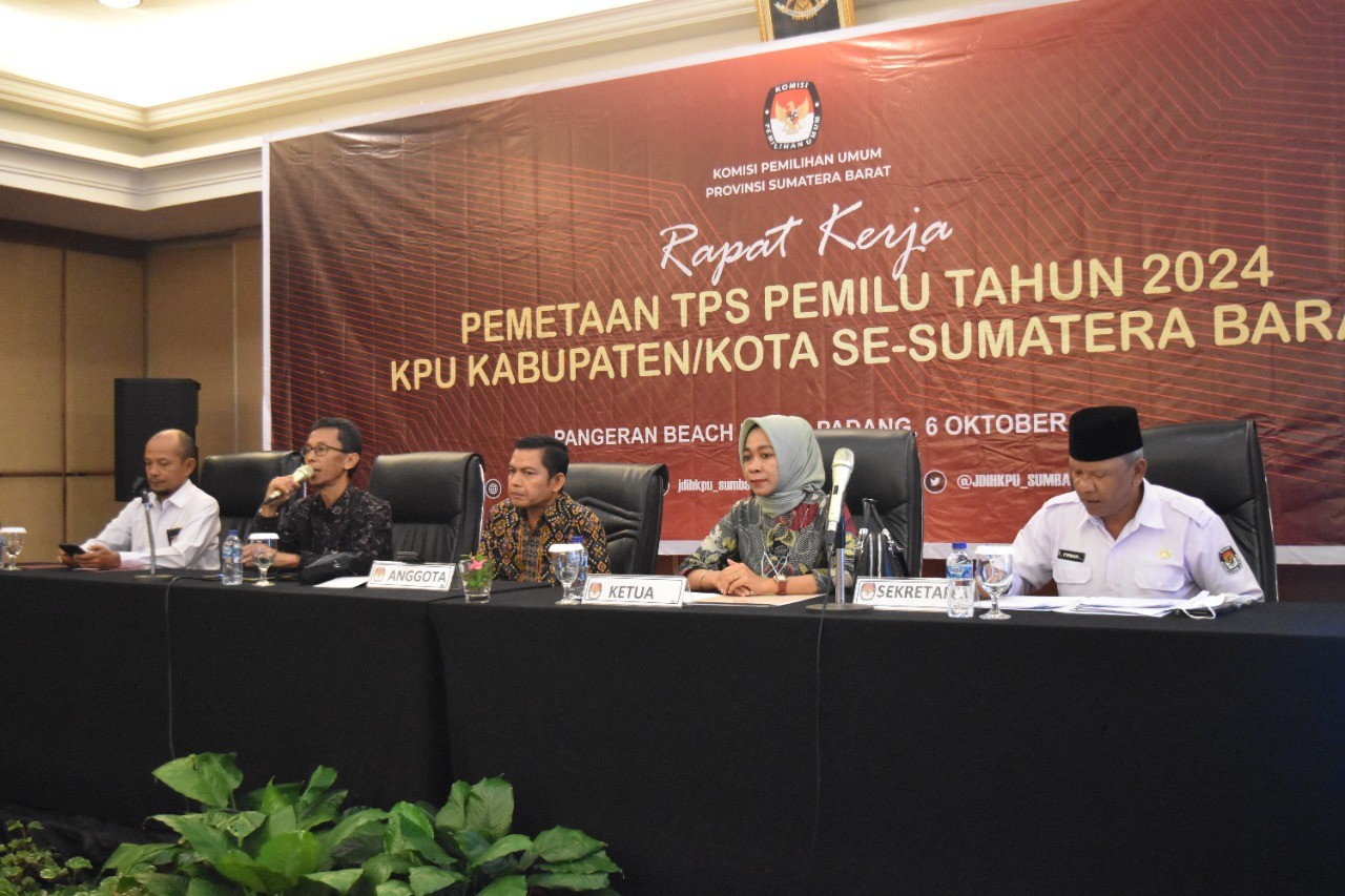 Padang, sumbar.kpu.go.id – Potensi penambahan jumlah Tempat Pemungutan Suara (TPS) ini diidentifkasi dalam Rapat Kerja (raker) Pemetaan TPS Pemilu Tahun 2024 yang dilaksanakan KPU Provinsi Sumatera Barat (KPU Sumbar) dengan KPU Kabupaten/Kota se-Sumatera Barat, pada Kamis (6/10) bertempat di Hotel Pangeran, Padang. Pemetaan ini dilakukan sebagai bentuk penyesuaian terhadap dinamika masing-masing daerah terutama pemadanan dengan data pemilih. Teknisnya pemetaan TPS Pemilu 2024 disusun berdasarkan Daftar Pemilih Berkelanjutan (DPB) yang dimutakhirkan secara rutin oleh seluruh KPU Kabupaten/Kota, dimana data DPB terakhir yang ditetapkan adalah DPB September, sebelum dimulainya tahapan Pemutakhiran Data Pemilih Pemilu 2024.