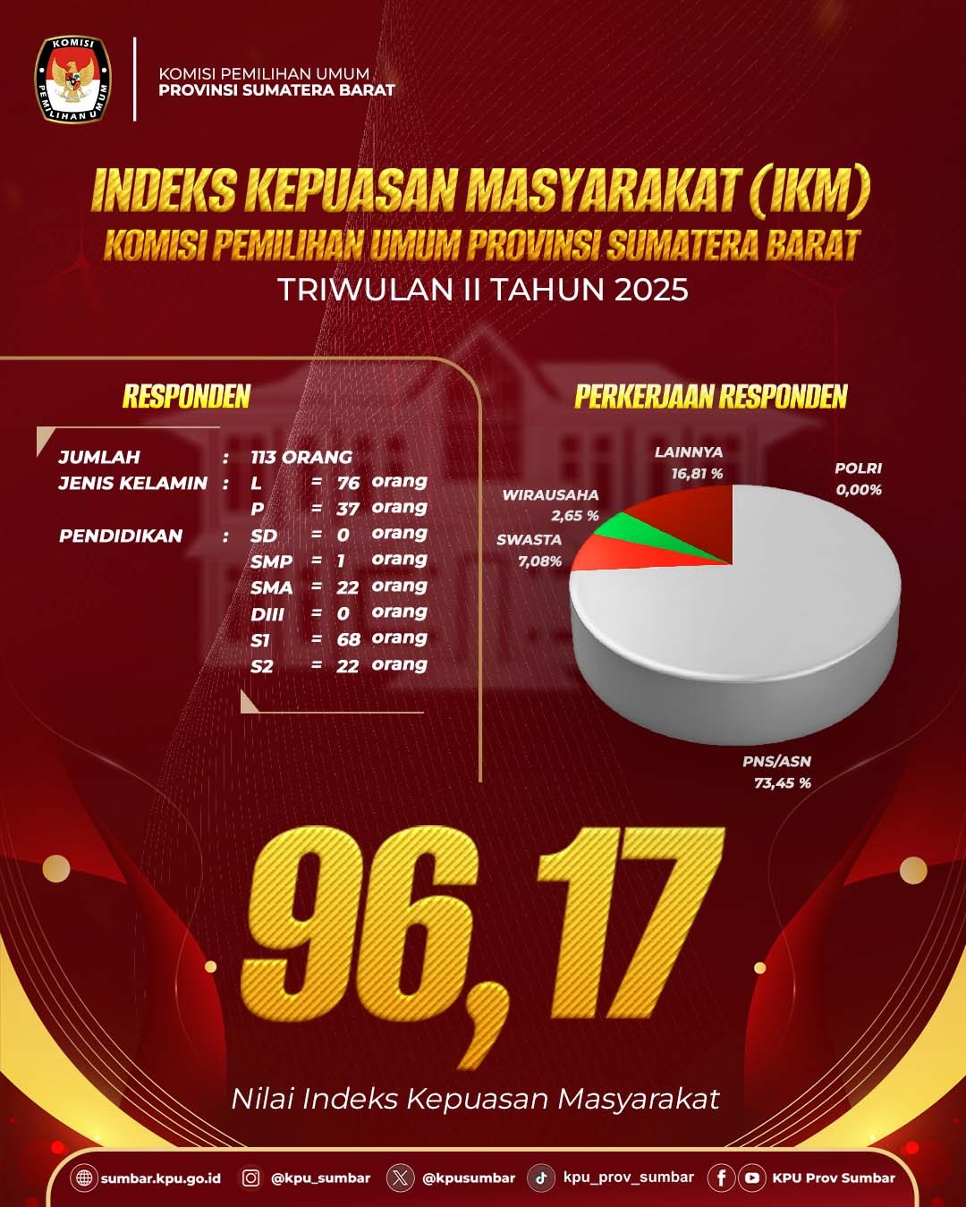 - INDEKS KEPUASAN MASYARAKAT KPU PROVINSI SUMATERA BARAT TRIWULAN II TAHUN 2025