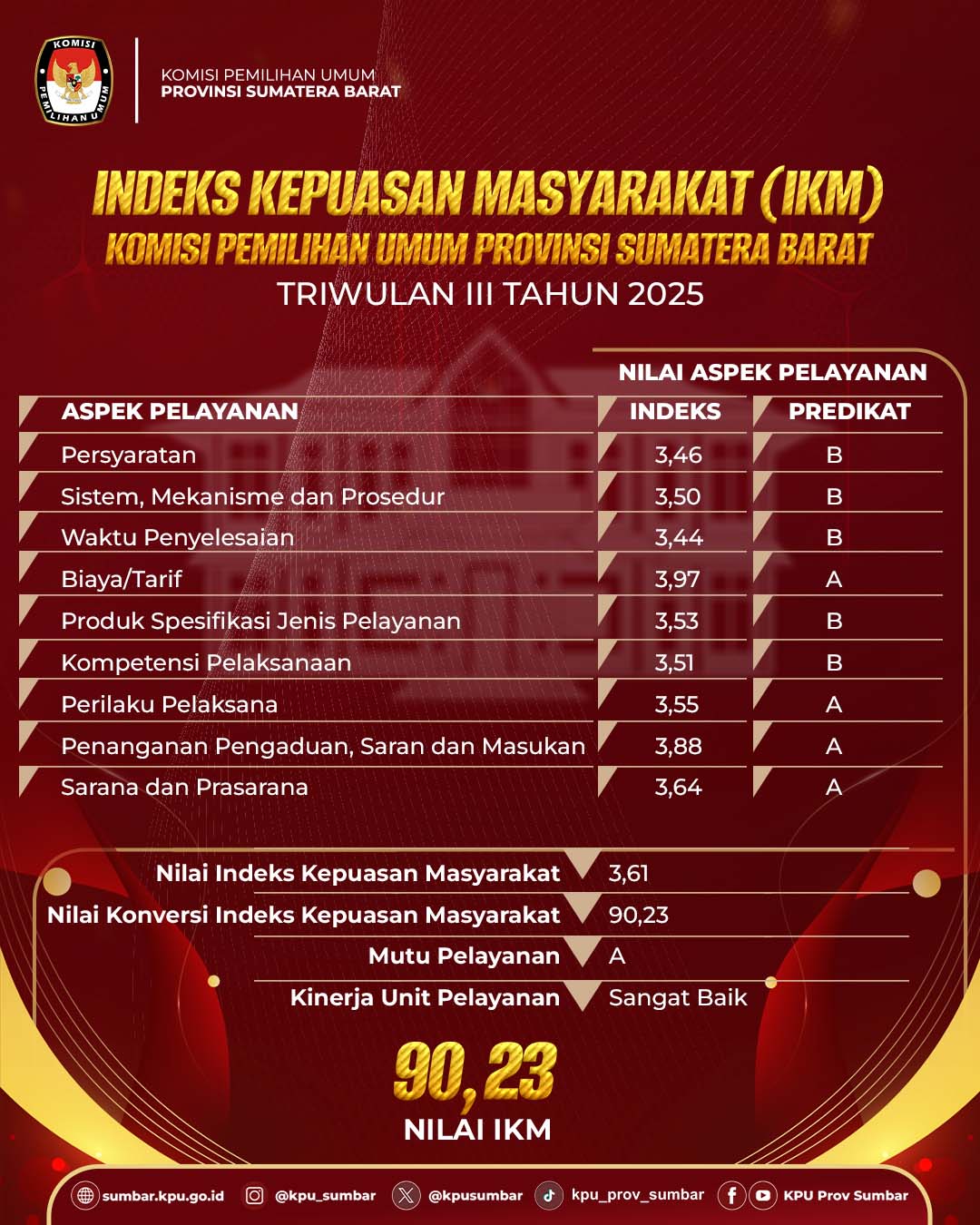 - INDEKS KEPUASAN MASYARAKAT KPU PROVINSI SUMATERA BARAT TRIWULAN III TAHUN 2025